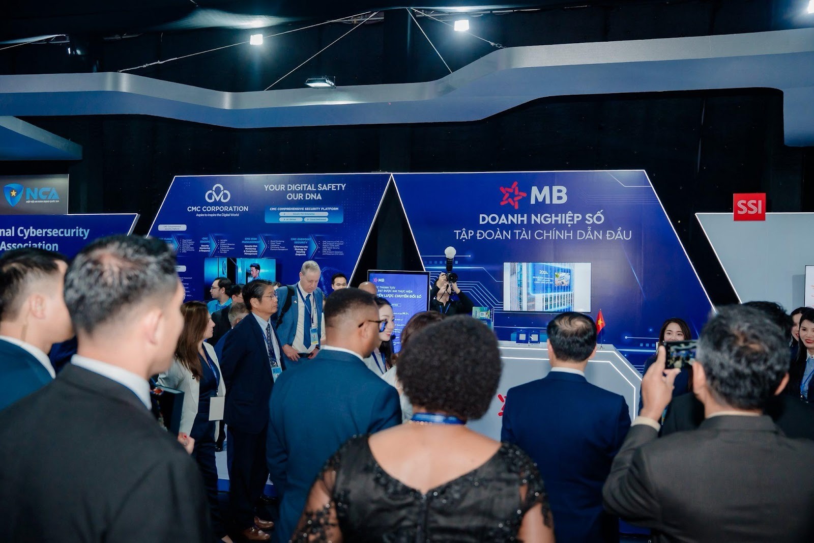 Đồng hành cùng sự kiện quan trọng này, Ngân hàng TMCP Quân đội (MB) vinh dự là một trong những doanh nghiệp Việt Nam tiêu biểu tham gia khu vực triển lãm công nghệ do Chính phủ Việt Nam và Ban Thư ký Liên Hợp Quốc phối hợp tổ chức. Tại đây, MB giới thiệu hệ sinh thái ngân hàng số và các giải pháp an ninh mạng tiên tiến, thể hiện năng lực công nghệ và cam kết mạnh mẽ trong việc xây dựng không gian số an toàn, minh bạch và phát triển bền vững.